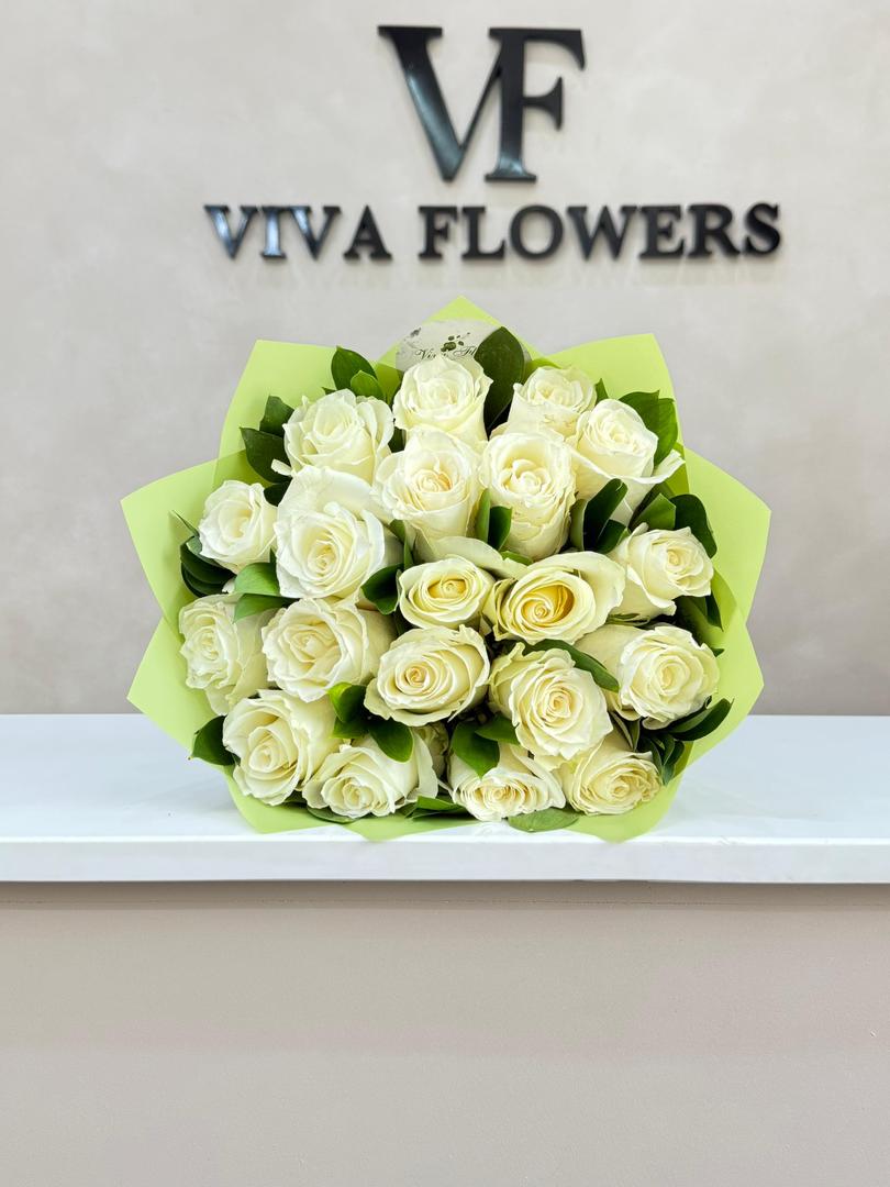 Classic, calm white Roses and Greens Arrnagement