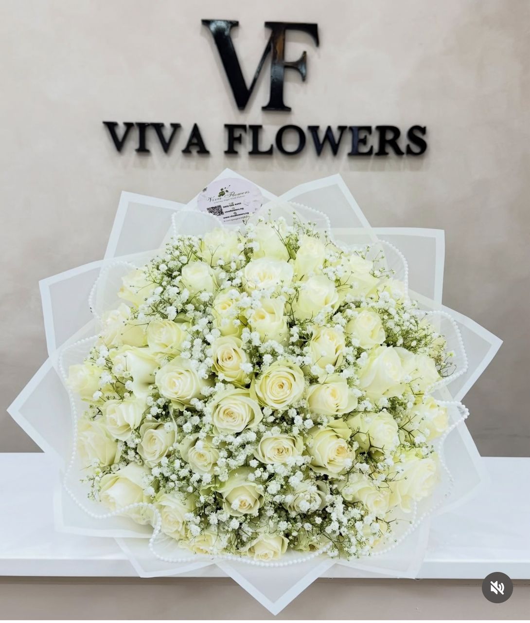 Mixed spray roses with baby’s breath, wrapped in a pearl wrap.
